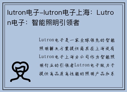 lutron电子-lutron电子上海:Lutron电子:智能照明引领者