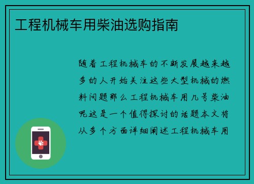 随着工程机械车的不断发展,越来越多的人开始关注这些大型机械的燃料问题。那么,工程机械车用几号柴油呢?这是一个值得探讨的话题。本文将从多个方面详细阐述工程机械车用几号柴油的问题,希望能够为读者提供更多的背景信息和有价值的知识。