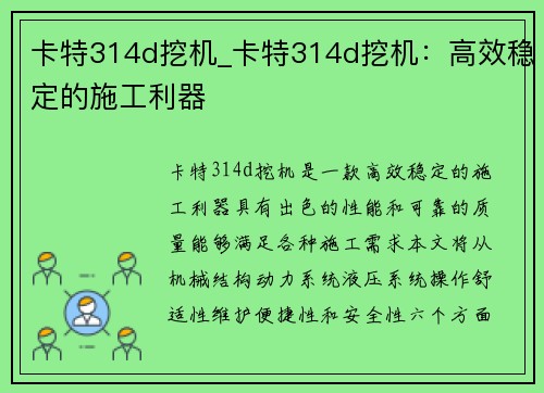 卡特314d挖机_卡特314d挖机:高效稳定的施工利器